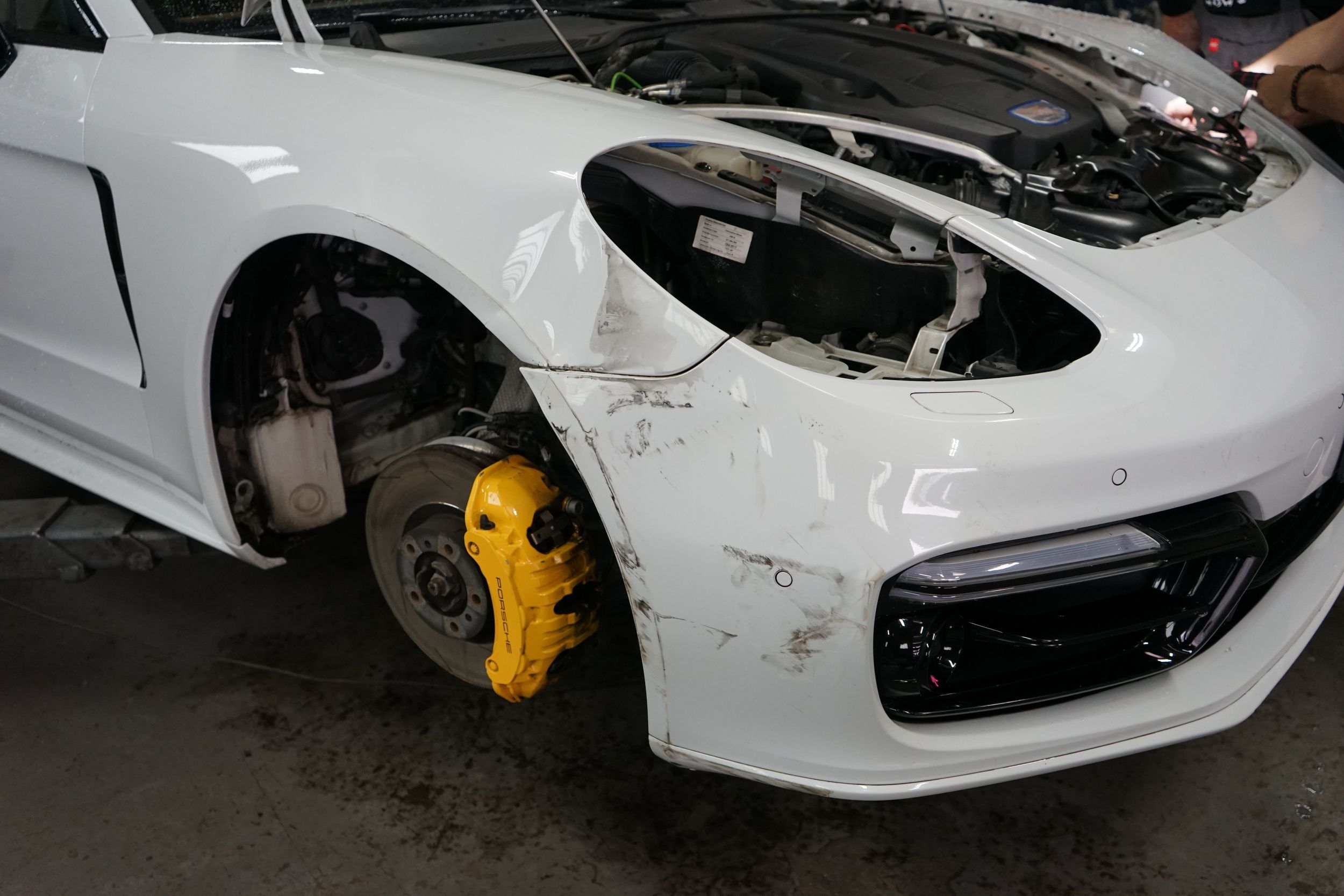 Schadenbeschreibung: Erneuerung Scheinwerfer vorne links, Stoßfänger vorne links, Kotflügel vorne links, Felge vorne links, Reifen li/re, Tür vorne links, Seitenwand links (Side Blades).