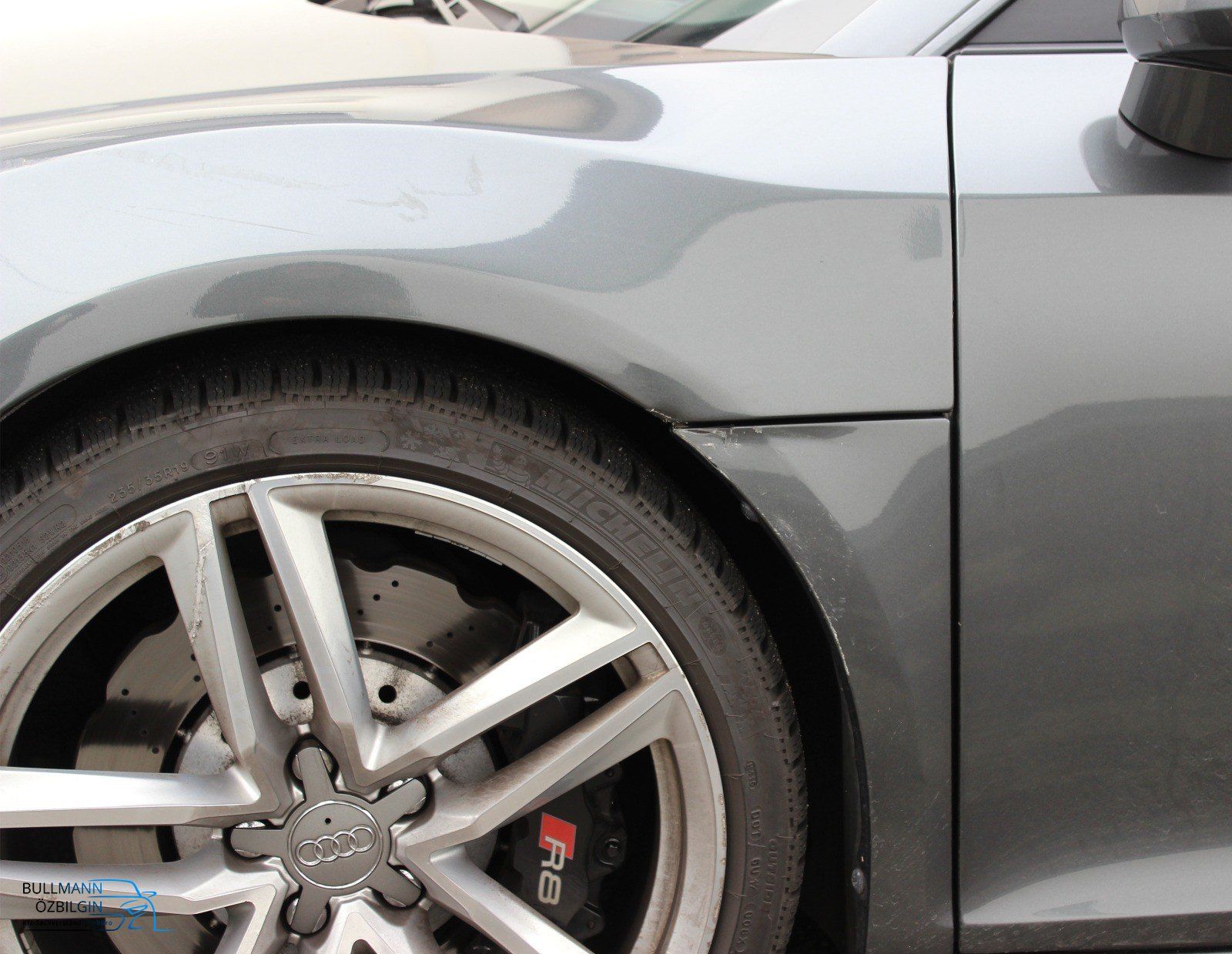 Weiteres: Aufgrund des Schadens und des Anstoßes am Rad wurde eine Achsvermessung durchgeführt. Eine Beilackierung an der Seitenwand hinten.