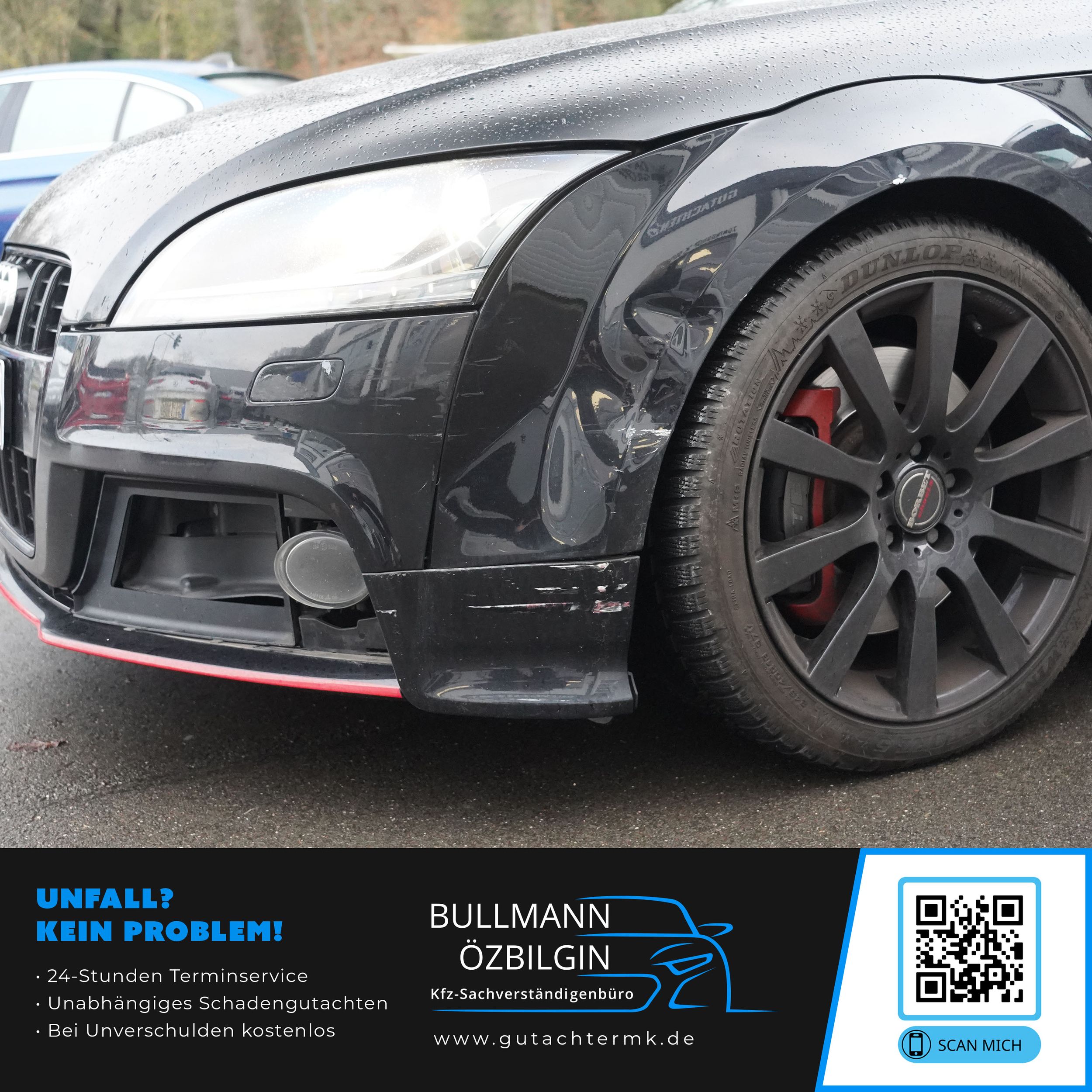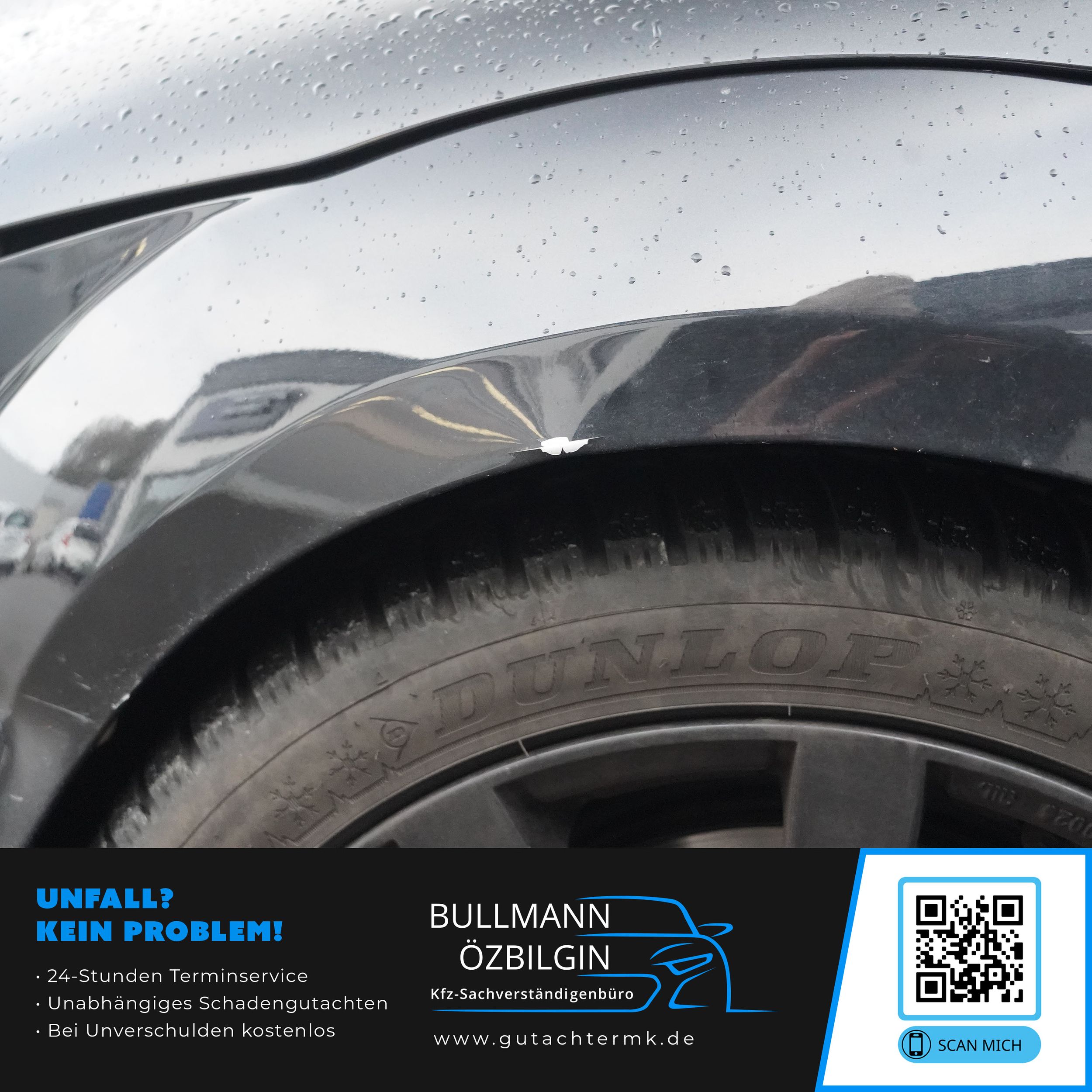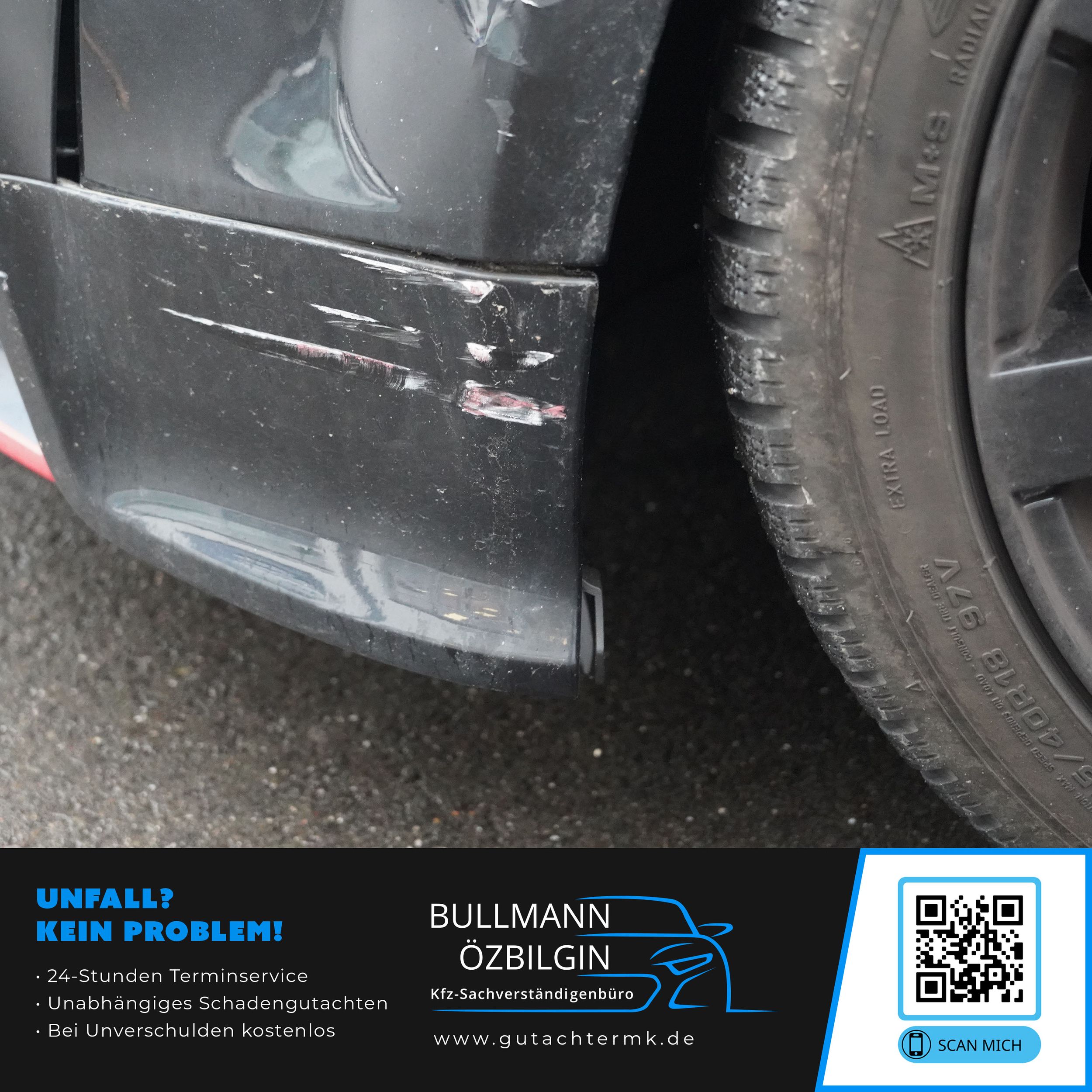 Schadenbeschreibung: Erneuerung Stoßfänger vorne, Scheinwerfer vorne links, Seitenwand vorne links, Reifen vorne links