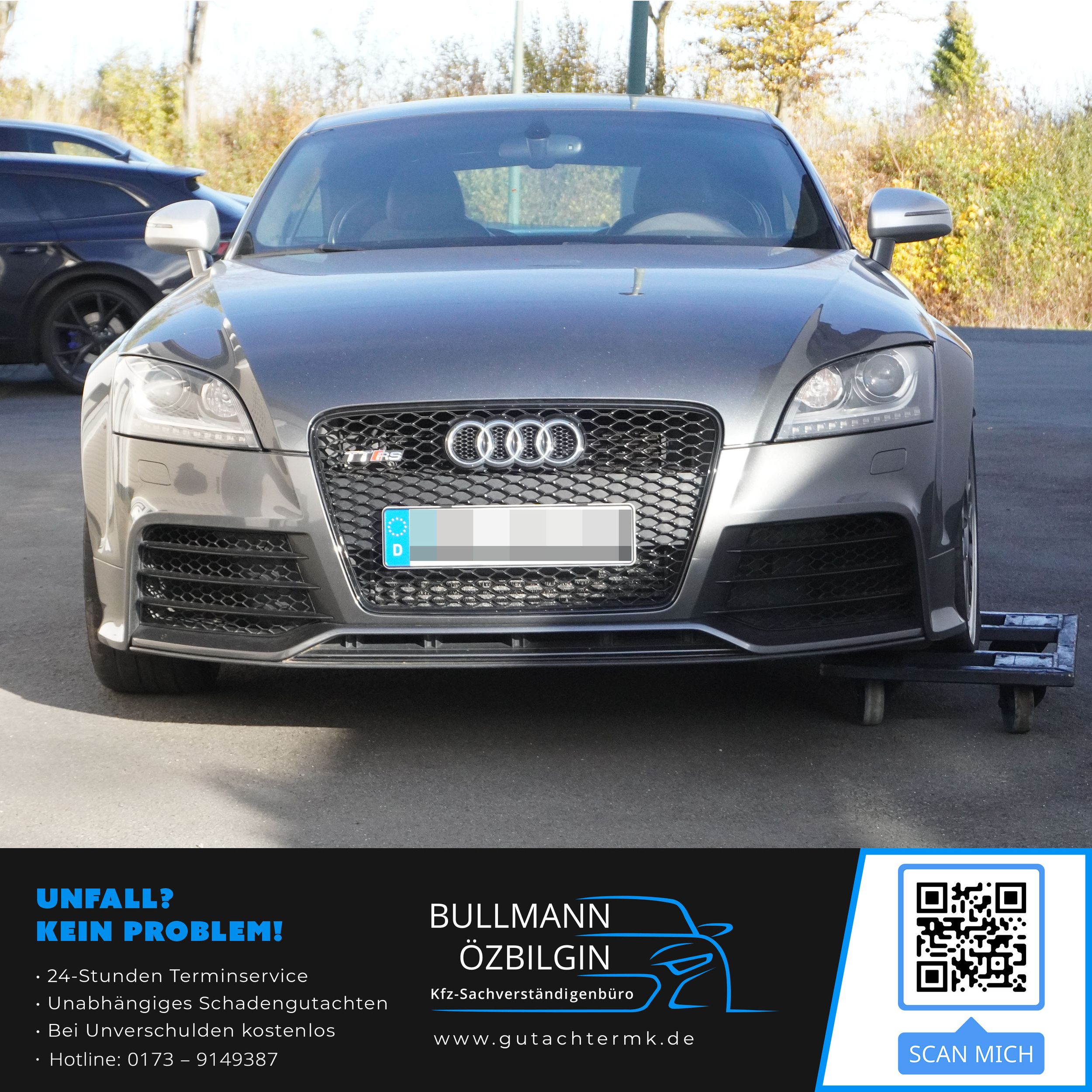 Schadenbeschreibung: Erneuerung Stoßfänger vorne, Seitenwand vorne links, Scheinwerferhalter vorne links Leichtmetallfelgen vorne links, diverse Achsteile