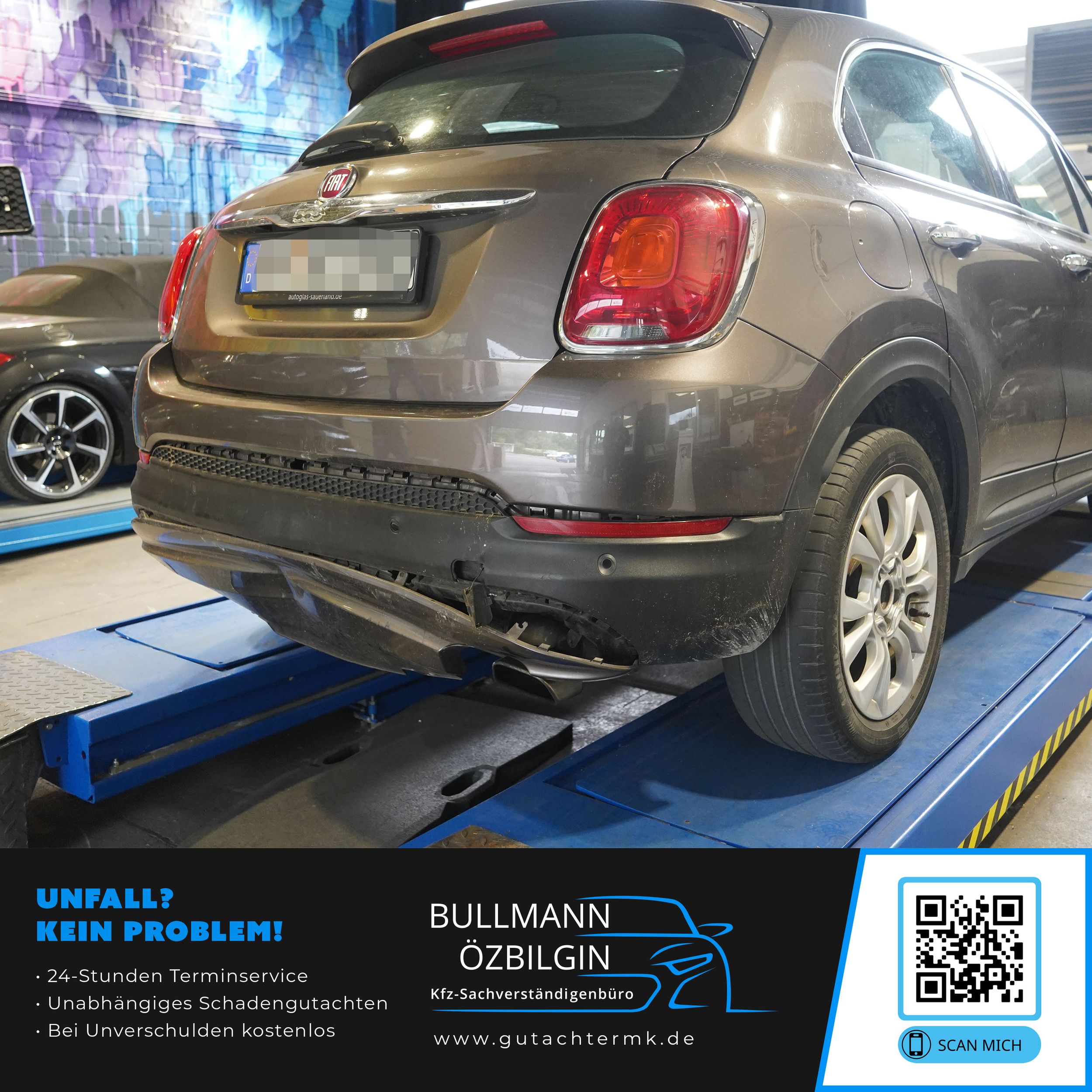 Schadenbeschreibung: Erneuerung Stoßfänger hinten, Stoßfänger Unterteil, Endschalldämpfer, Querträger hinten, Heckblech