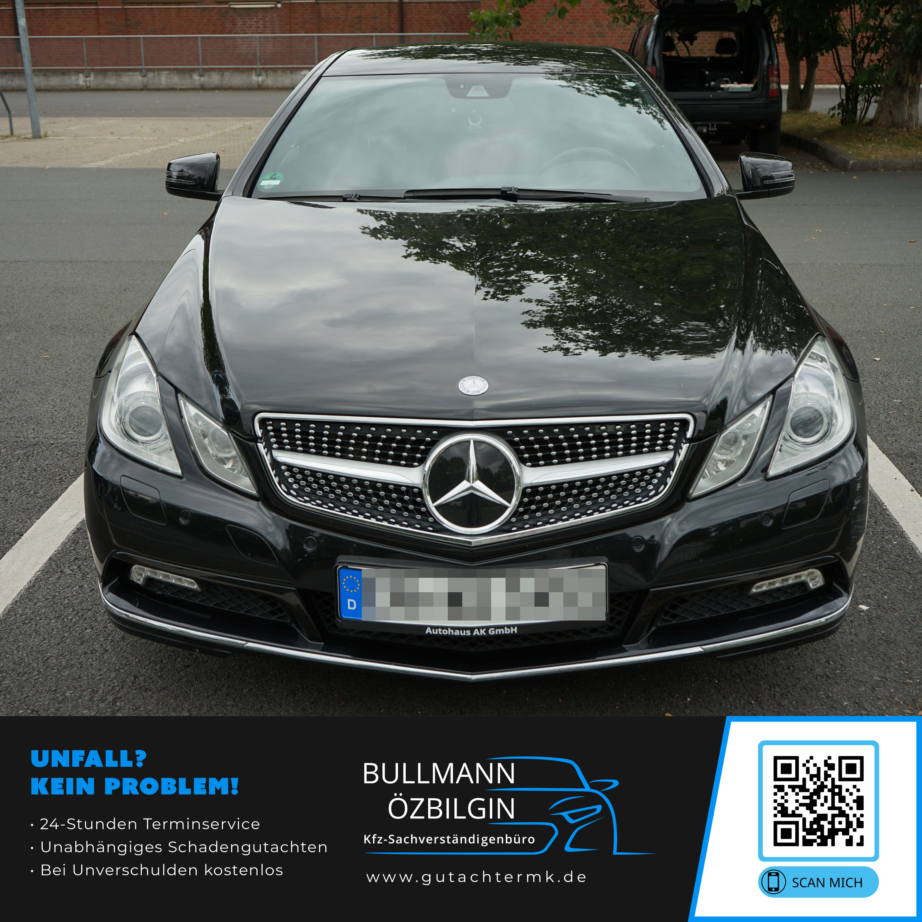 Schadenbeschreibung: Erneuerung Stoßfänger vorne, PDS-Sensor vorne links, Scheinwerfer links