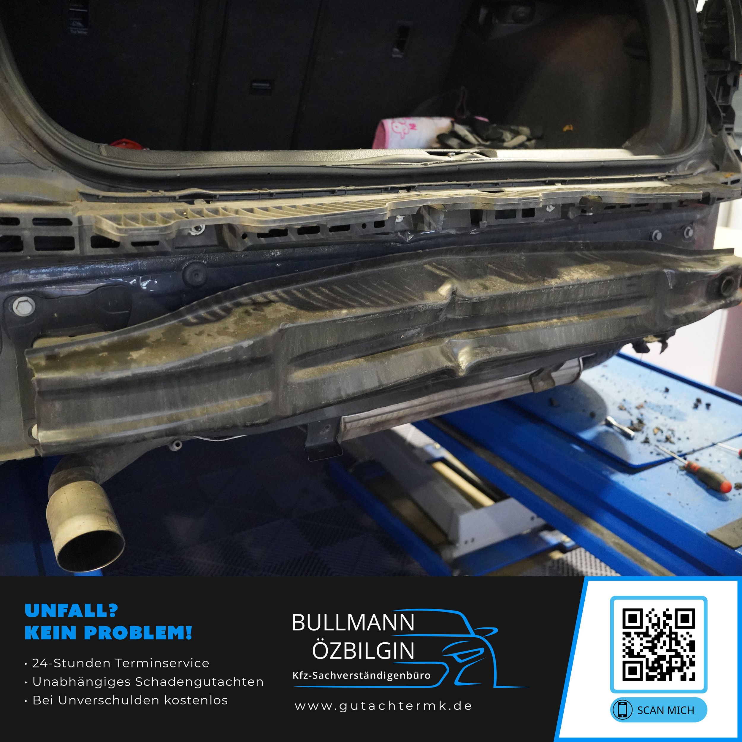 Schadenbeschreibung: Erneuerung Stoßfänger hinten, Kofferraumdeckel, Querträger, Heckblech