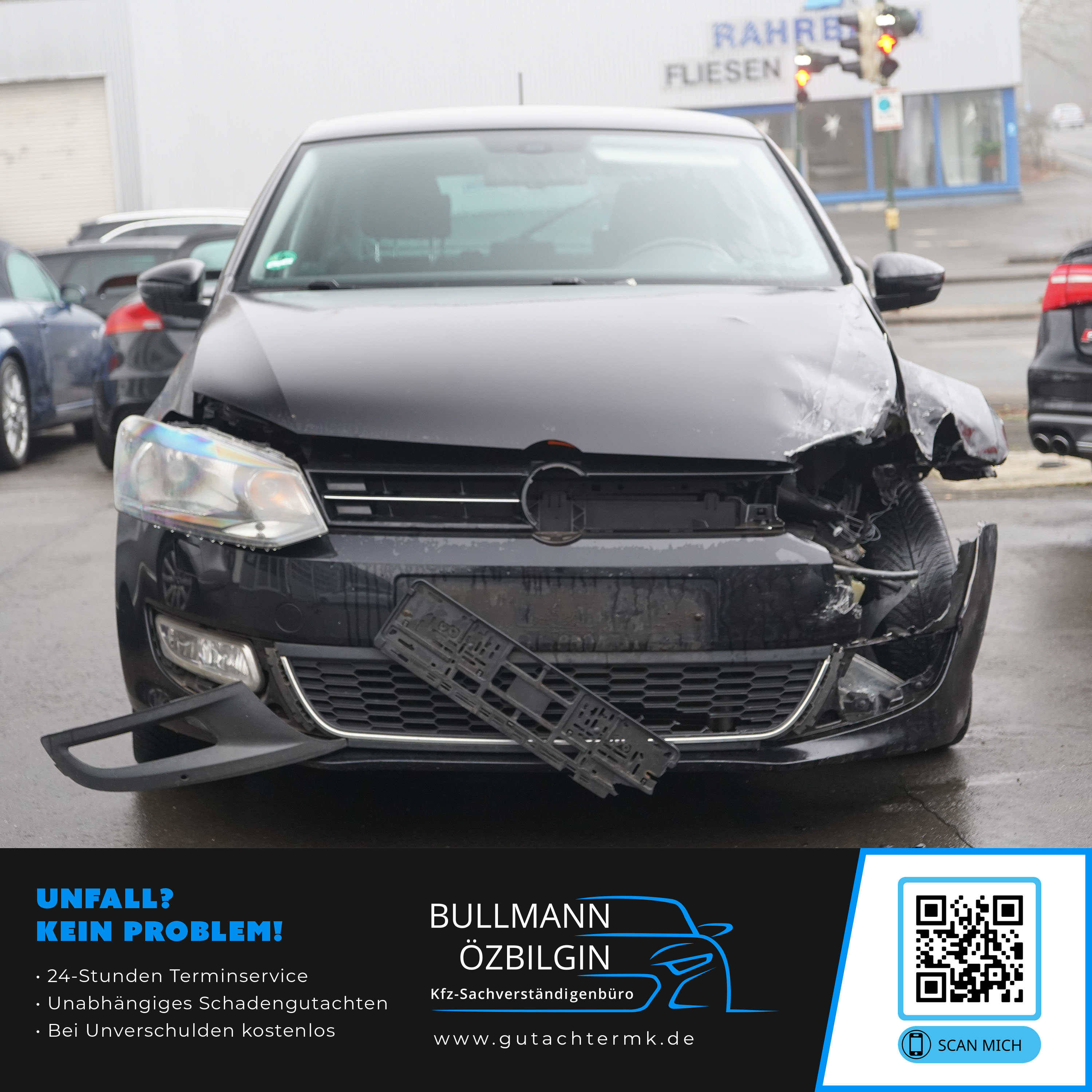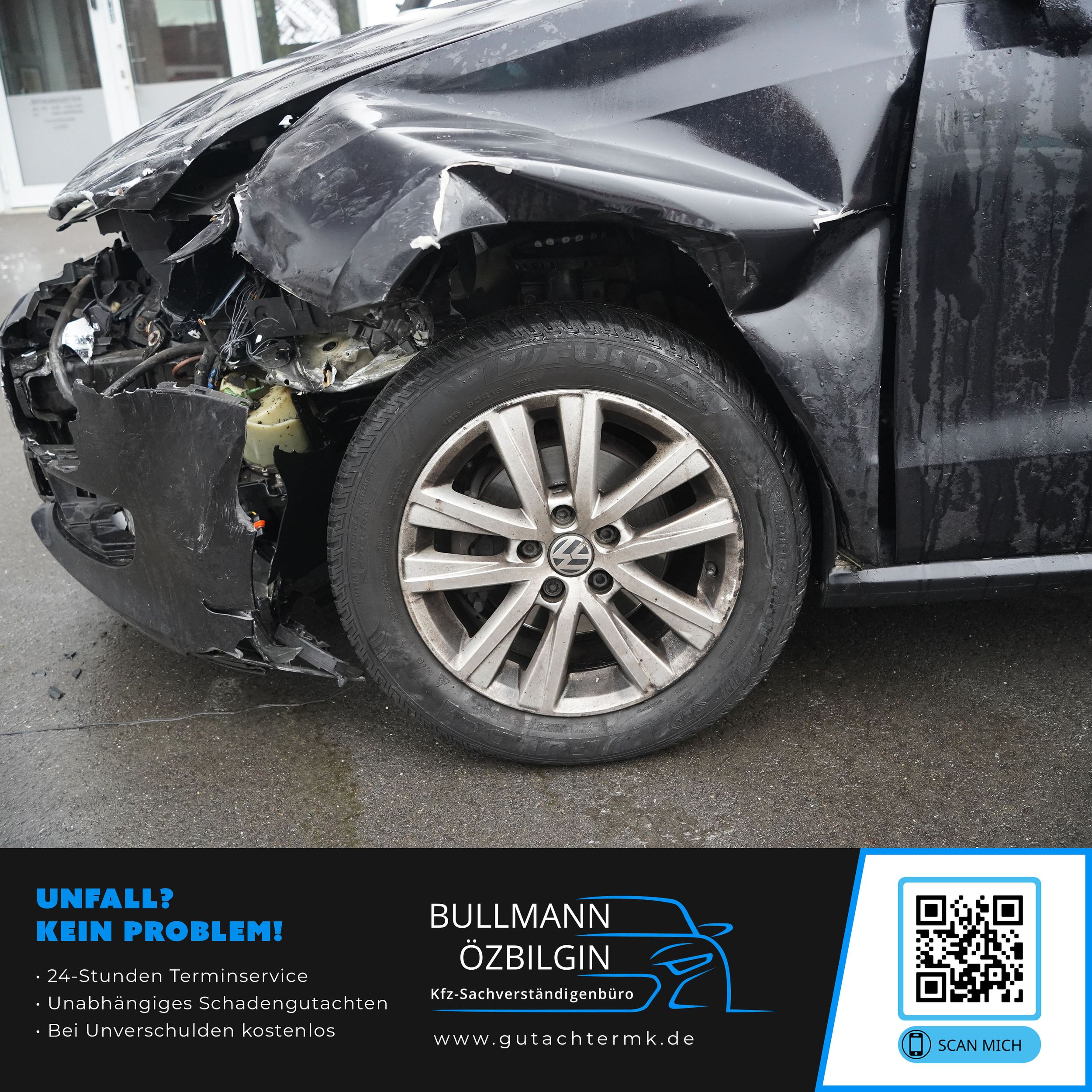 Weiteres: Aufgrund des Schadens und des Anstoßes wurde keine Achsvermessung durchgeführt, da diverse Achsteile gebrochen sind